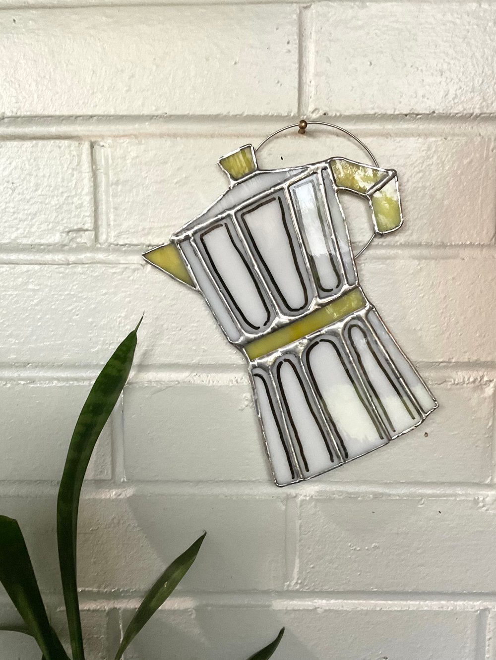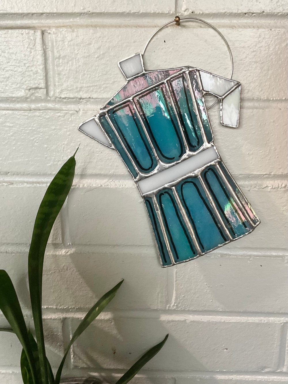 Stained glass Moka Pot measures approx. 7 x 5.5 inches